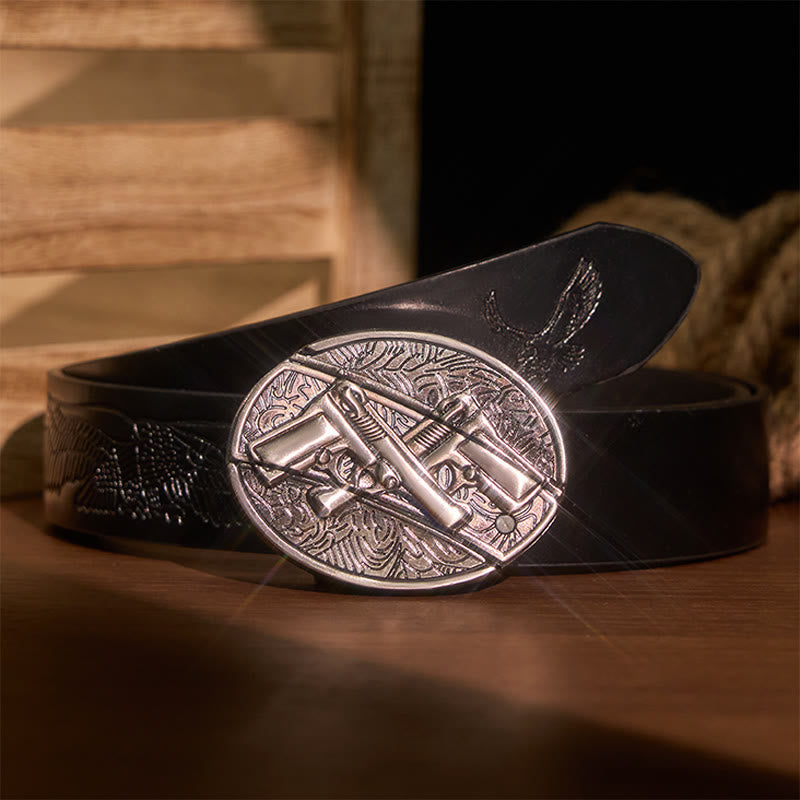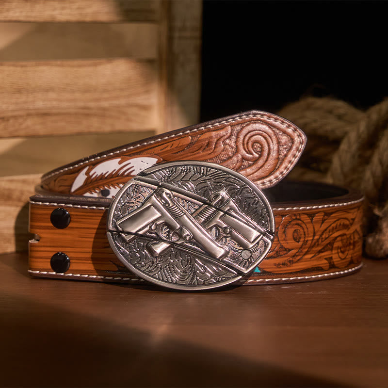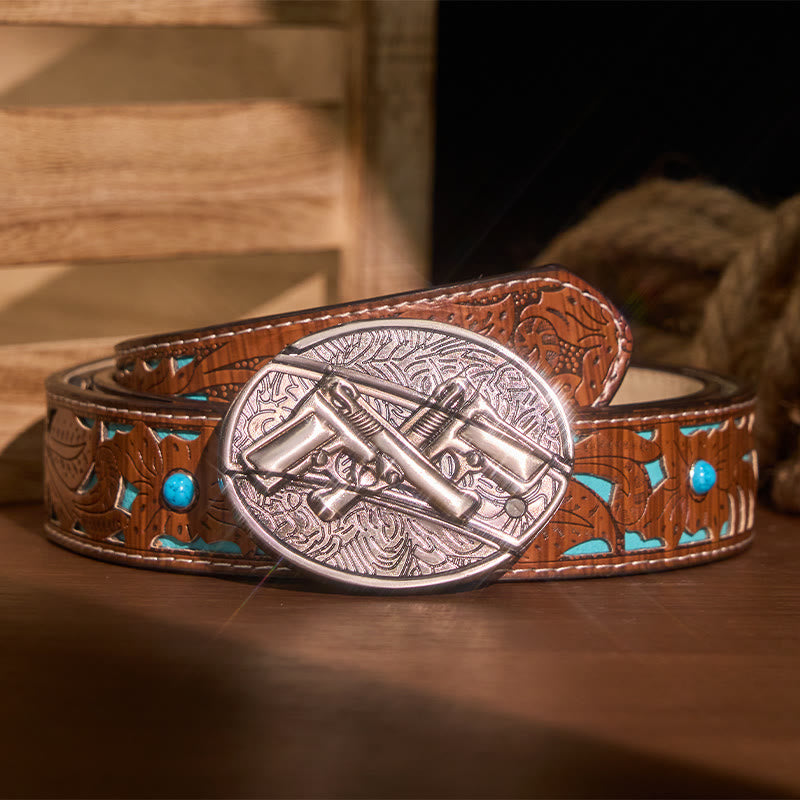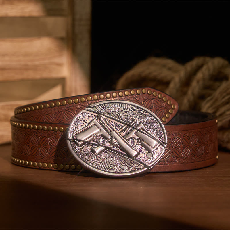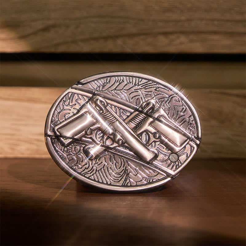 - This Dual Gun buckle has an awesome shiny finish. lt is in a perfect wearable condition.
