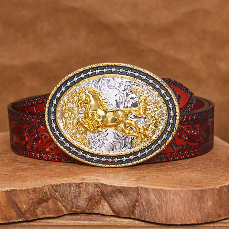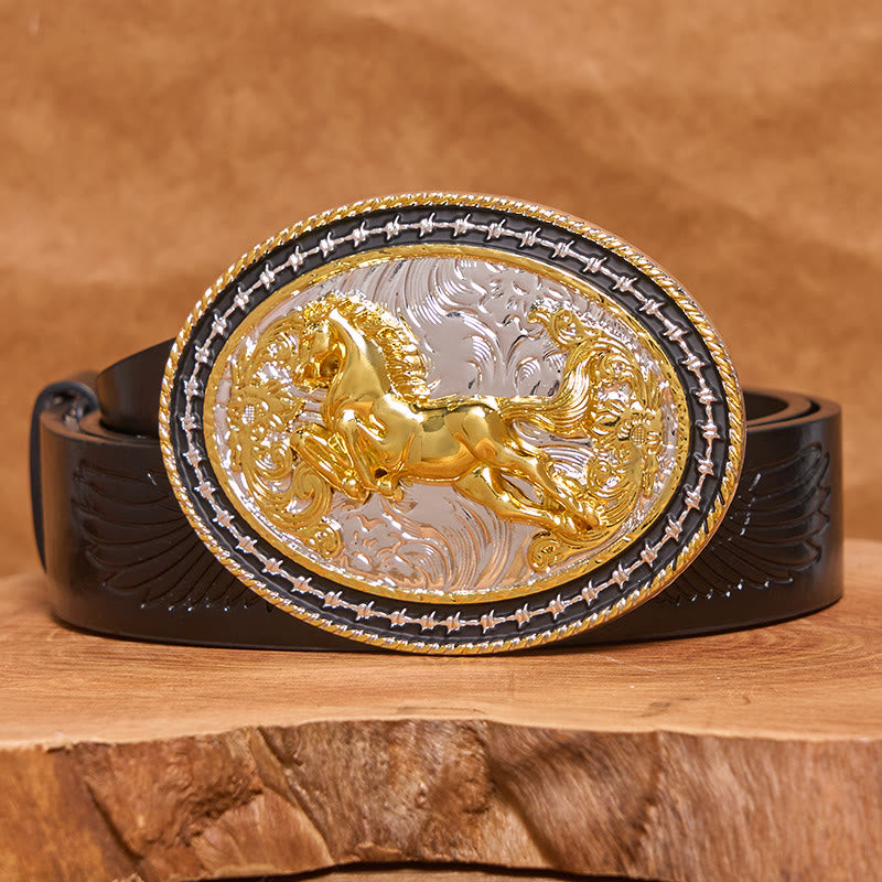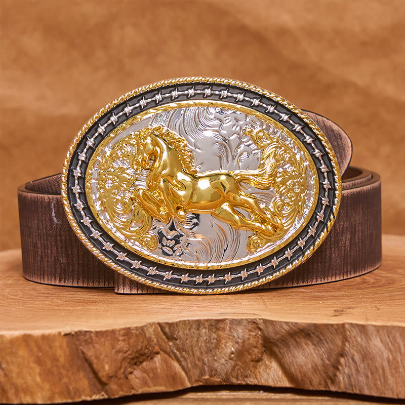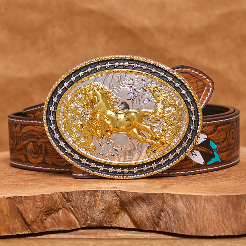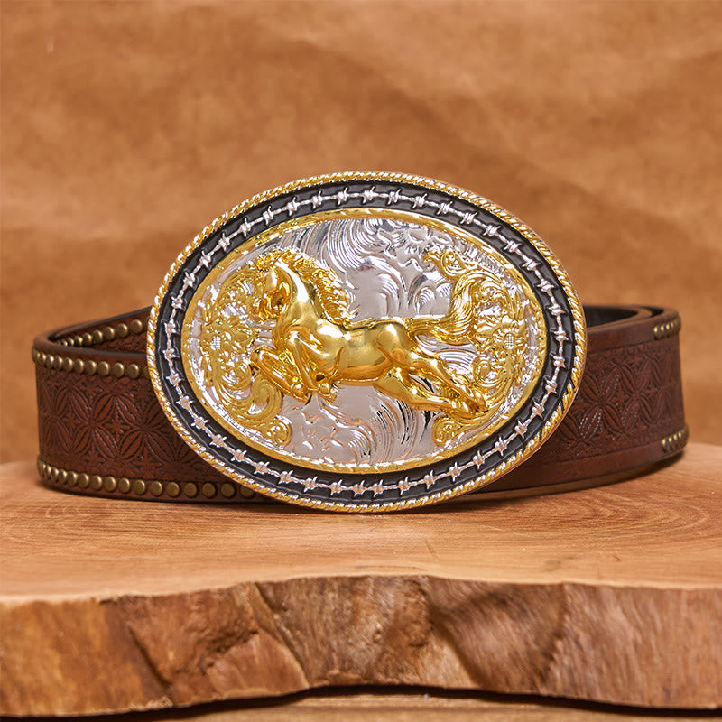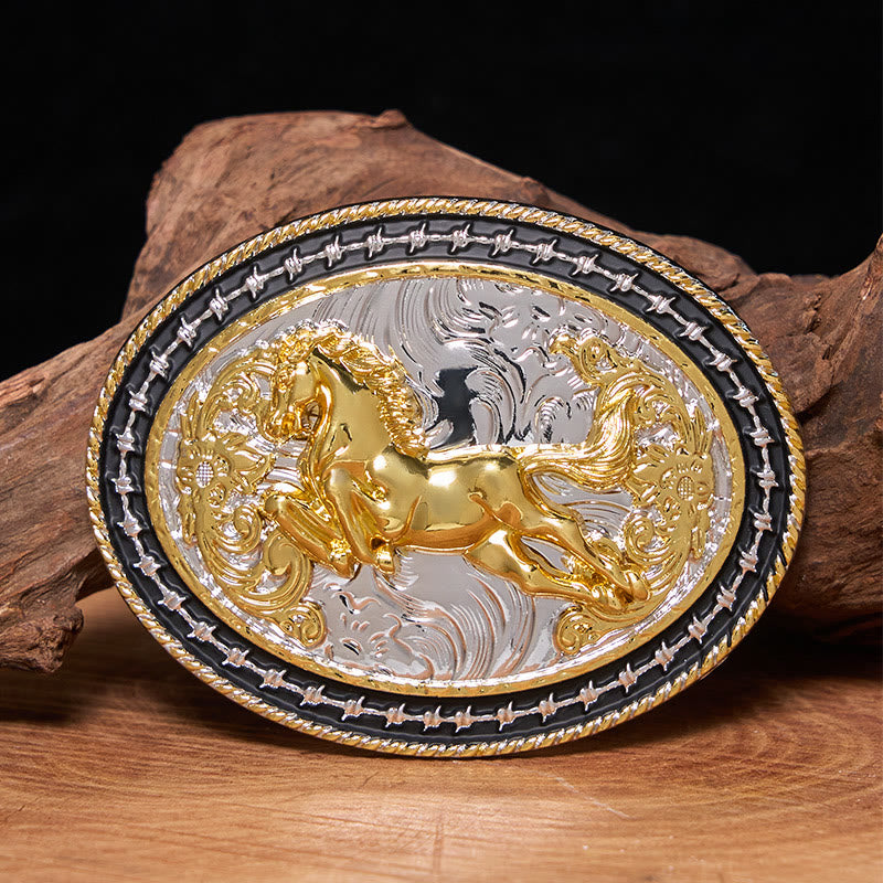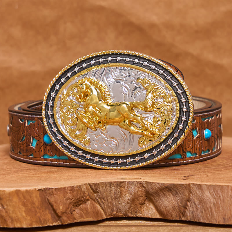 The main body is a three-dimensional golden galloping horse decoration, matched with exquisite carved patterns. The overall retro luxury is full of details, with a strong Western wild atmosphere;