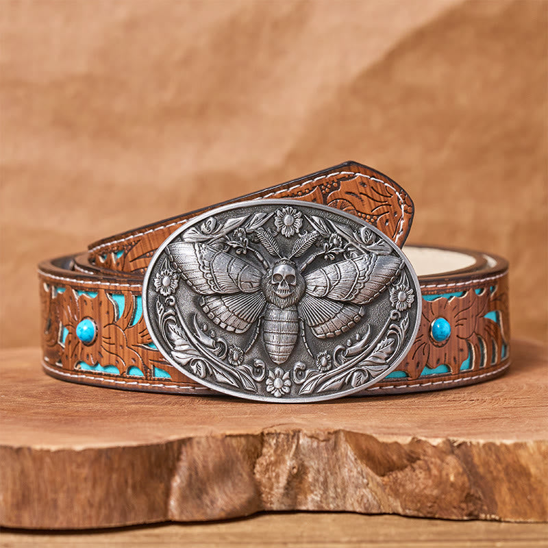 Dark Elegance Skull-Headed Moth Buckle Leather Belt
