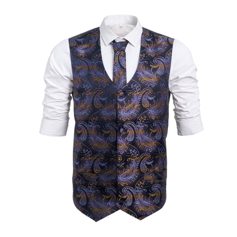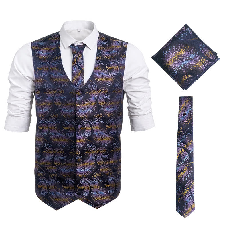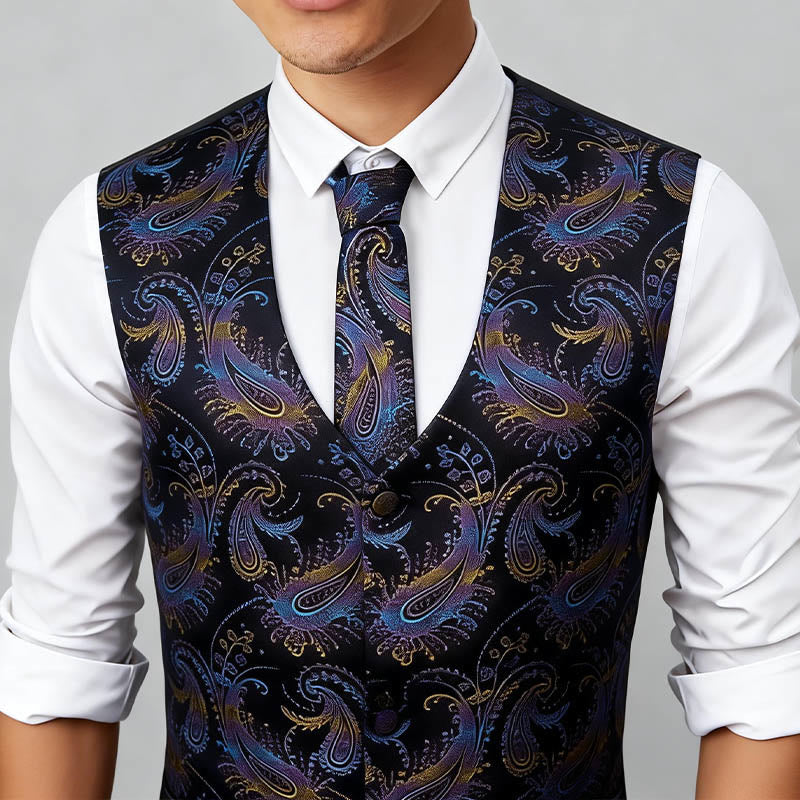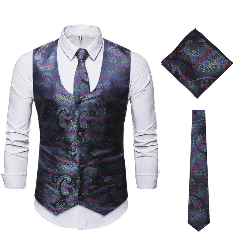 3Pcs Men's Retro Paisley Pattern Dress Vest Set