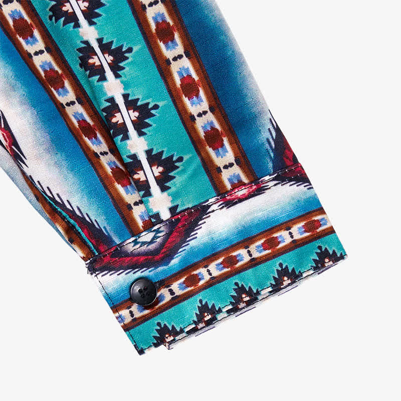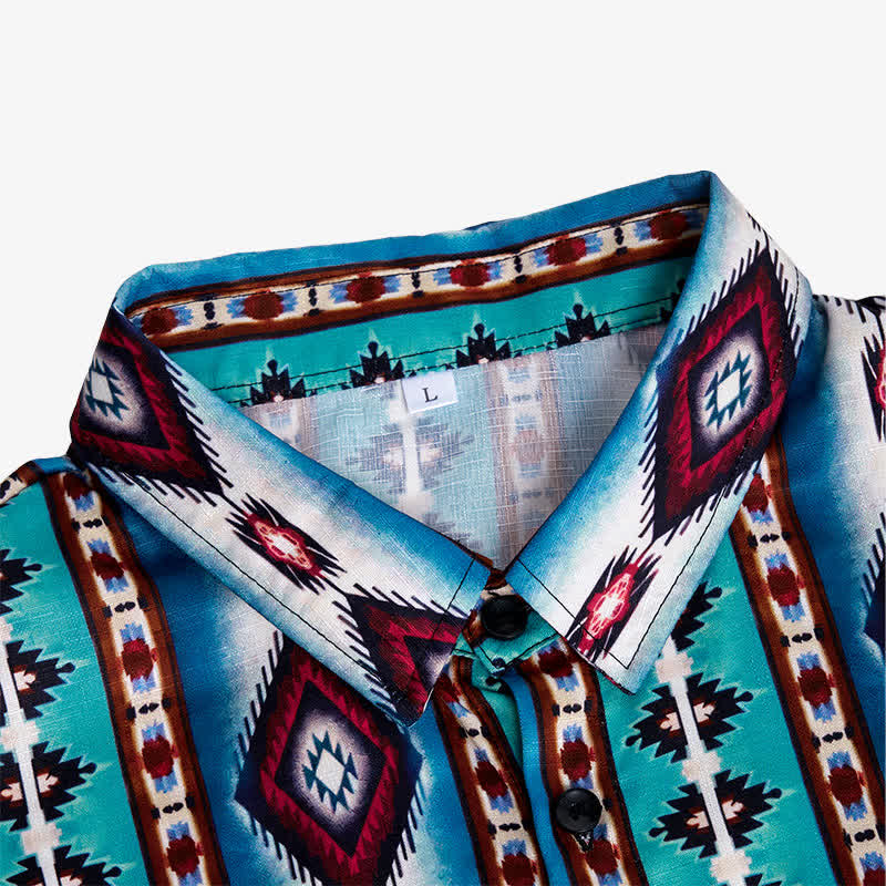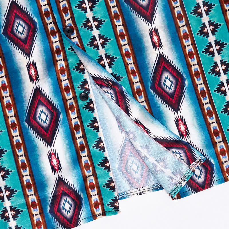 Capture the rugged spirit of the American West with this vibrant men’s Western shirt. Featuring a bright turquoise base adorned with bold red diamond motifs and intricate tribal geometric patterns, this shirt blends authentic Southwestern heritage with modern cowboy style. Perfect for rodeos, country concerts, ranch days, or casual Western-inspired outfits, it’s designed to stand out while keeping you comfortable all day long.