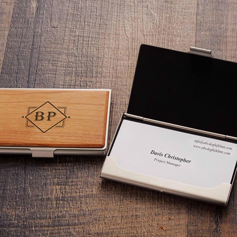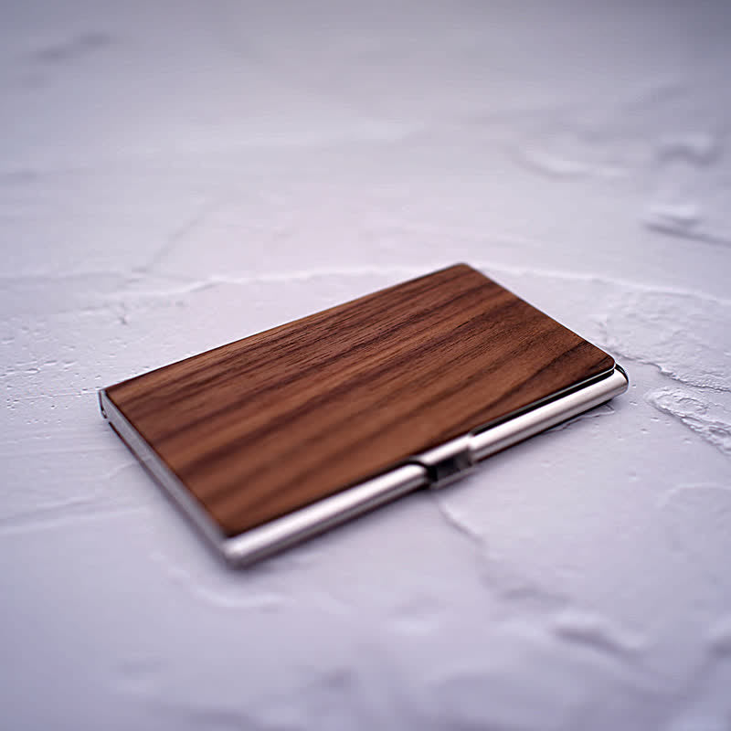 - This stylish card case, crafted from premium wood, exudes sophistication and professionalism, making it the perfect accessory for corporate events or everyday business meetings. Make a lasting impression with a business card holder that's as polished and professional as you are.