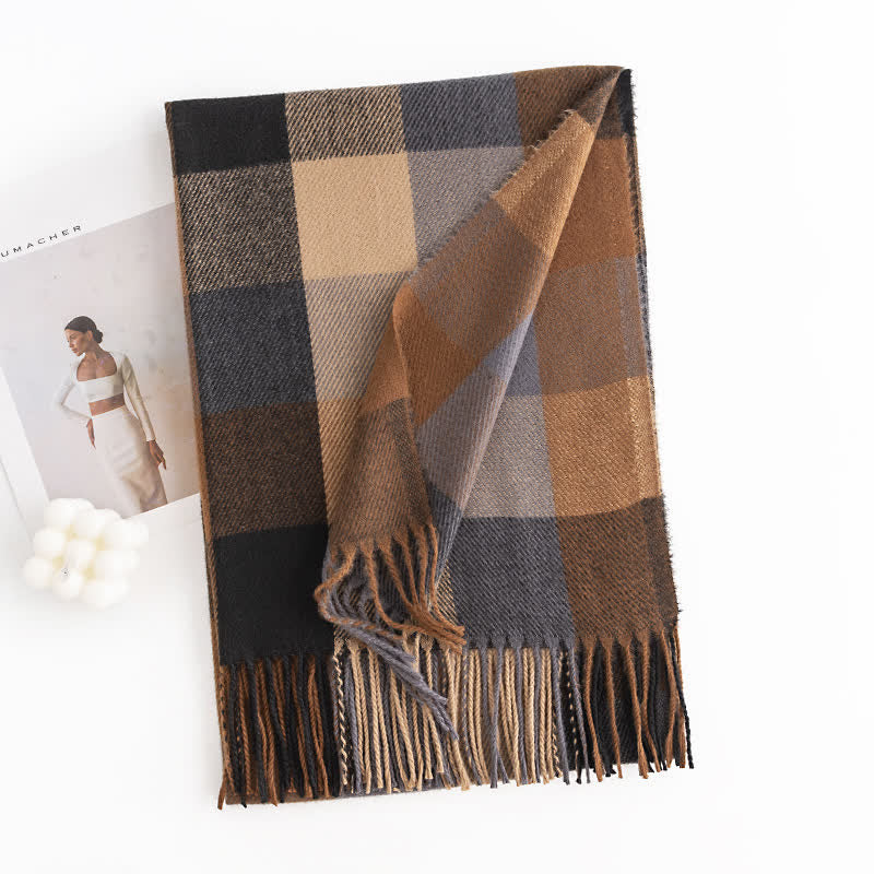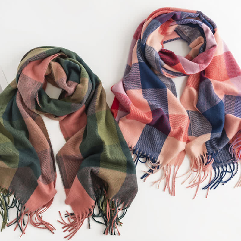 Woven with high-quality imitation cashmere, it gives you warmth all over, the color is bright and fashionable. There are tassels decorated, making this scarf more cute and while wearing.