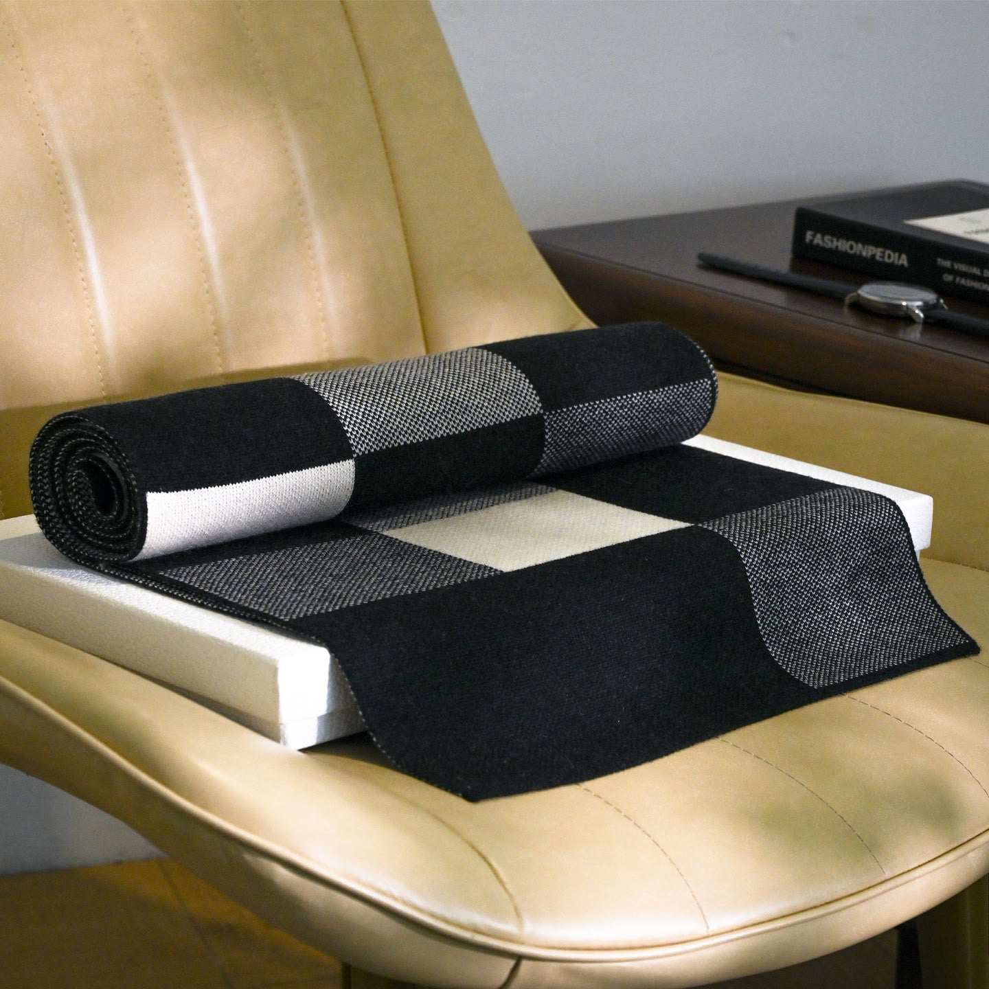 Men's Black-White Plaid Cozy Versatile Winter Scarf