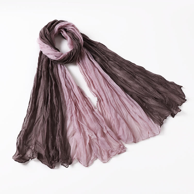 These two-tone crinkled scarves blend soft, lightweight fabric with a textured, naturally wrinkled finish—featuring gradient color-blocked designs that add effortless depth to any outfit. Perfect for year-round layering, they offer a relaxed, bohemian vibe while staying comfortably breathable.