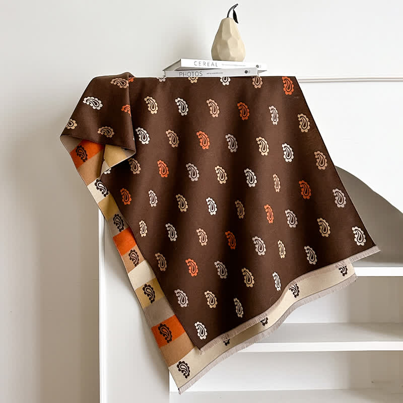 Featuring classic paisley motifs in a mix of earthy tones and bold stripes, it exudes a retro-boho vibe. Whether you’re heading to a casual brunch or a weekend getaway, this paisley scarf adds a touch of artistic flair and cozy comfort, making it a must-have for your seasonal wardrobe.