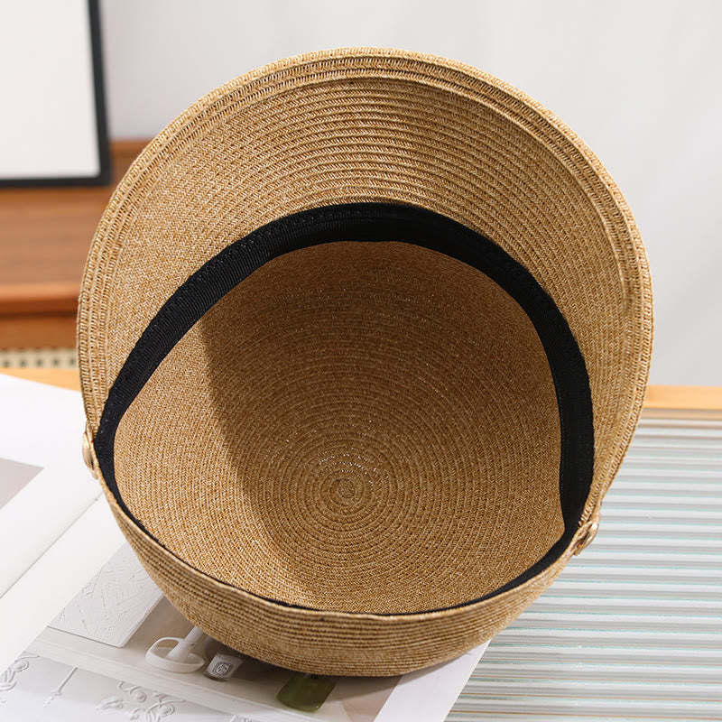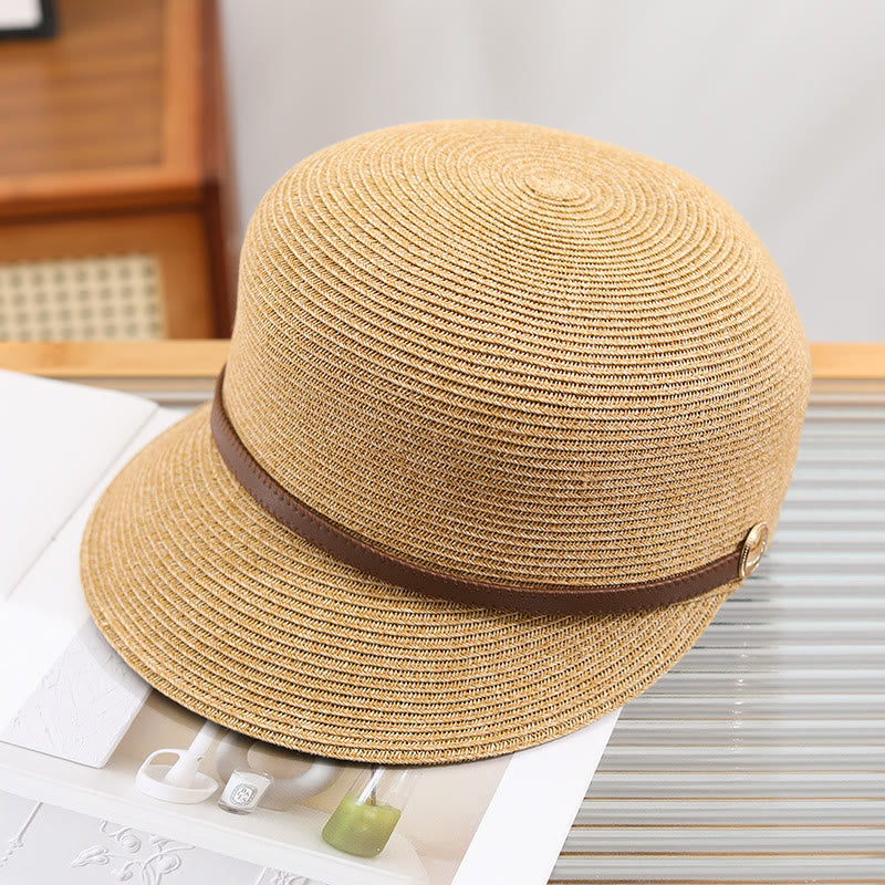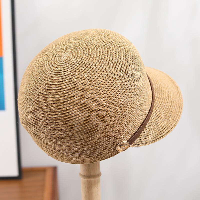 This lightweight straw cap blends timeless equestrian style with summer practicality, featuring a unique belt style and a polished metal button for a refined finish. Designed for casual scenes, this cap is perfect for adding a stylish touch to your daily look.