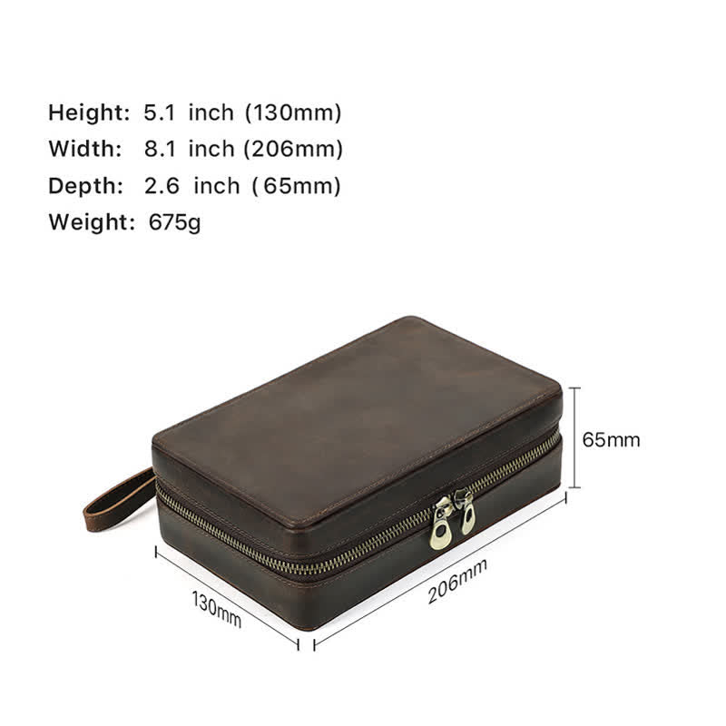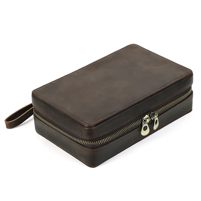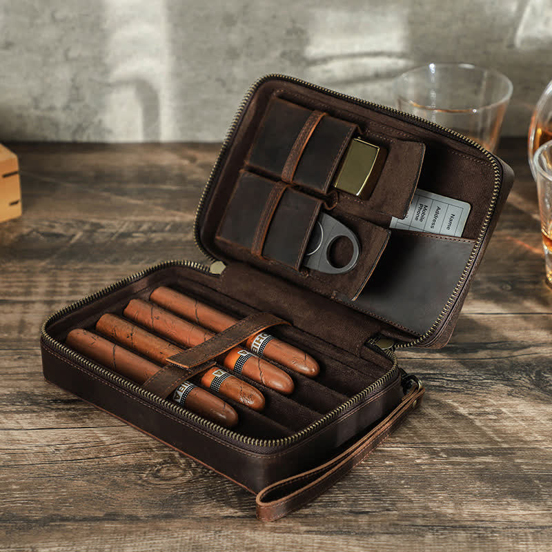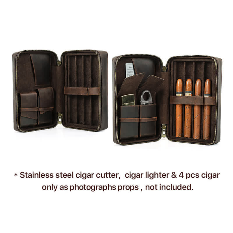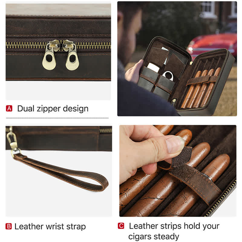 Crazy Horse Cowhide Zipper Leather Cigar Case (For Four Cigars)