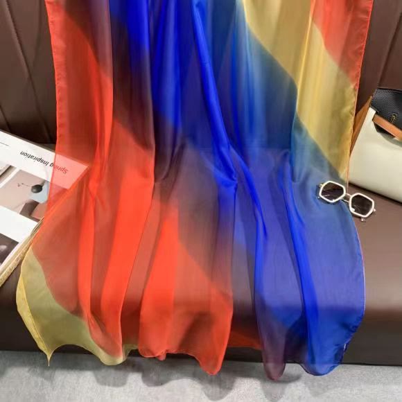 Crafted from lightweight flowy fabric, this scarf features vivid gradient color details that add rich visual layers and elegant drape. It comes with soft and breathable texture for comfortable wearing. You can style it as a neck scarf, hair accessory, or bag decor to elevate your look. Suitable for all seasons, it also makes a charming gift for fashion lovers on holidays or special moments.